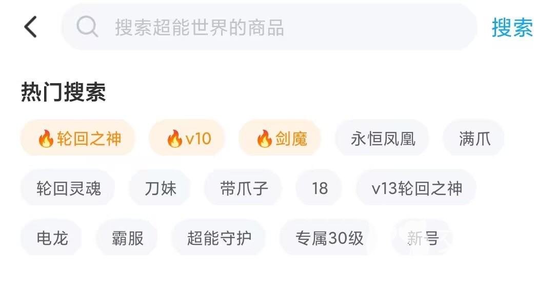想要知道自己的超能世界账号值多少钱大家可以来到交易猫的该游戏交易专区,从热门搜索中可以看到游戏买家们目前对于哪些账号资源比较认可:轮回之神、剑魔、永恒凤凰、极限电龙等等,只要有这些角色的基本上价格都会增加100,其次就是根据VIP等级可以判断出卖家的氪金数量,V15正常价值3k,V14正常价值2.5k,以此类推。