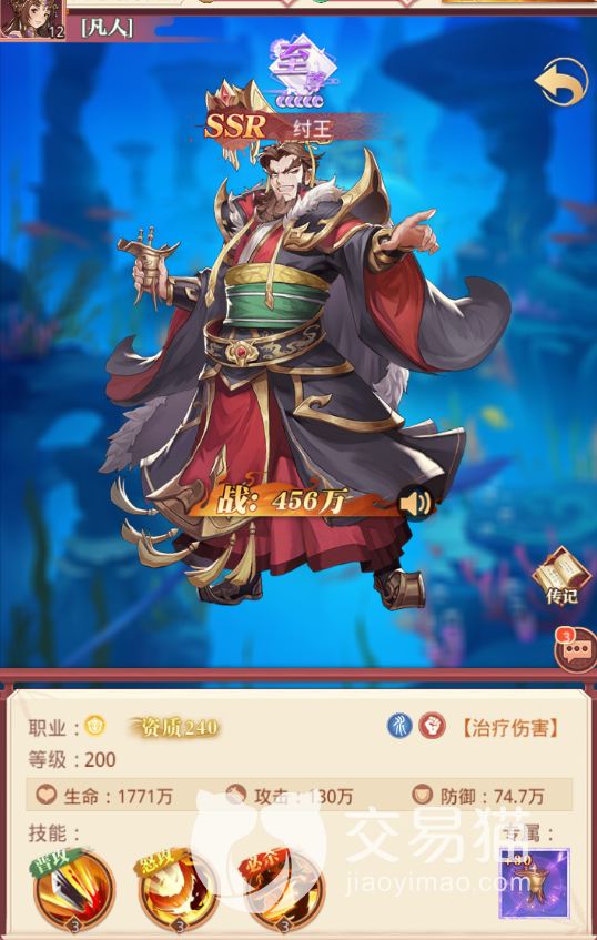 这套阵容的核心输出是纣王,他的攻击和血量都是很高的,因此光作为单卡来说主C的能力就很强,其三个技能都可以同时从攻击与血量上享受加成,对敌人全体都能造成极高的伤害,必杀更是一经使用就能回复自身15%最大血量,可谓是能打能抗了。