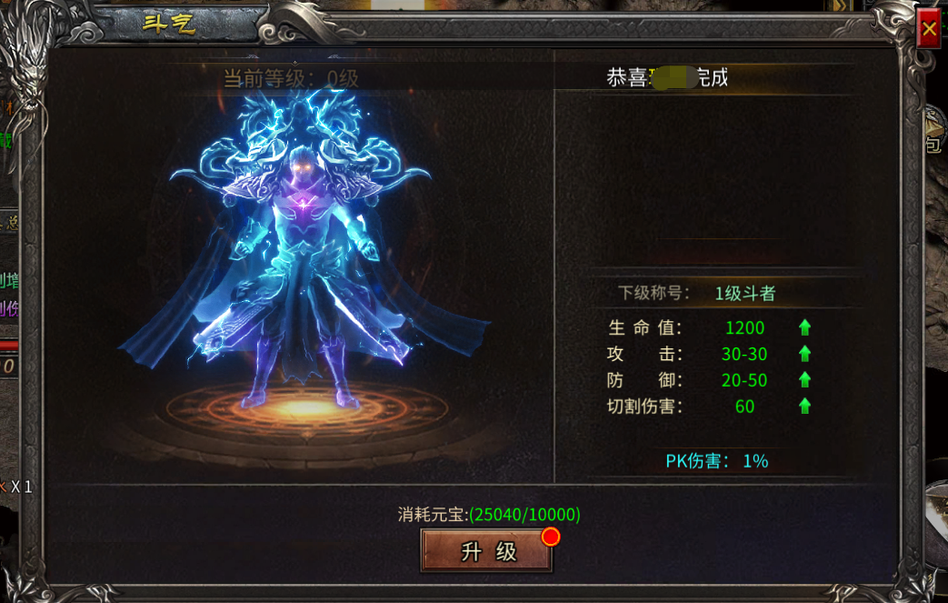 再一个就是斗气系统,它需要花费元宝进行提升,其提升的属性还是挺全面的,其中的切割伤害更是各项属性的重中之重,所以大家平时也要多关注一下。