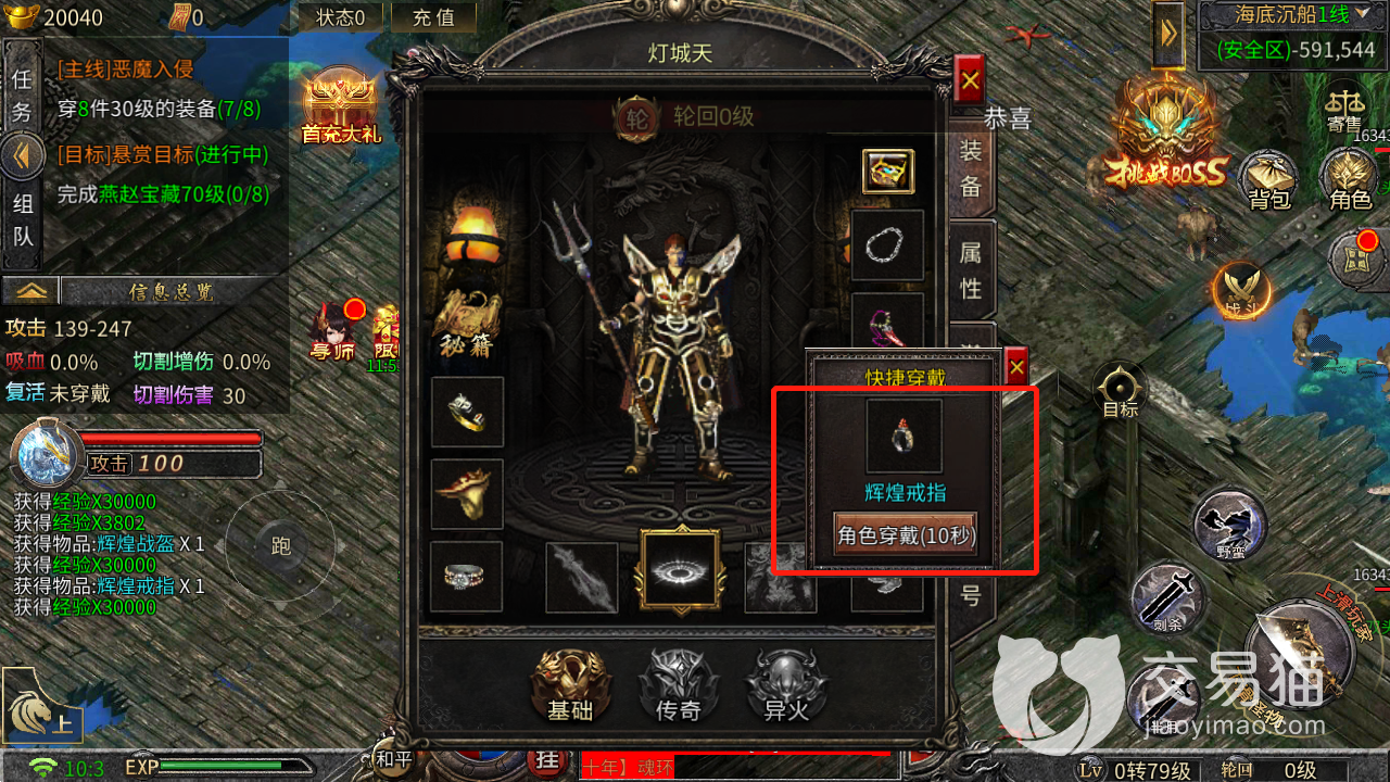 然后再就是副本中会自动拾取装备,大家平时多注意下,手动点击穿戴可以让主角的战力及时提升,从而提升刷副本的效率。