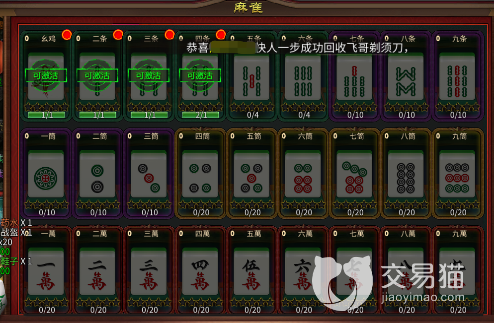 另外游戏中还独创了“麻雀”系统,这个系统说白了就是官方以麻将为原型,将各种牌做成了一个图鉴,玩家通过副本打宝有概率拾取到这些麻将牌,每搜集到一个牌都可以去图鉴中激活相关属性,虽然单个麻将牌前期的加成不多,但积少成多,全部集齐后还是能提供一笔不错的属性加成。