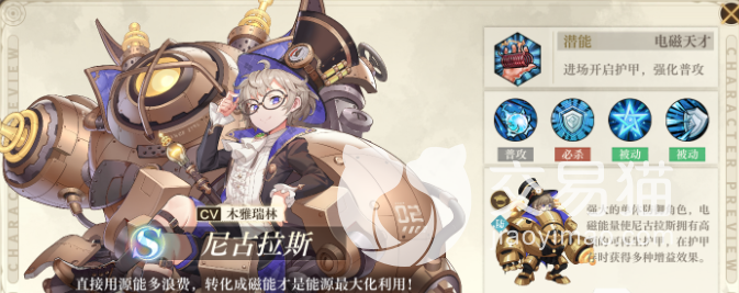 尼古拉斯:也是一个护盾型角色,不过与尼莫不同的是,该角色的护盾吸收效果更高,能够直接吸收自身防御十倍的伤害,不过缺点在于护盾范围比较小,因此排名会比尼莫靠后一些,对玩家的操作有一定的要求,上手难度比较高,不过掌握好技巧之后,会比尼莫更强。