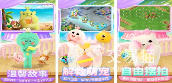 解压治愈类休闲游戏,游戏运用了萌宠的角色风格,玩家需要从地图场景当中解救这些可爱的小动物,将它们合成升级,提供更高的收益,同时游戏当中的角色支持玩家自由摆拍,主打陪伴玩法的休闲游戏。
