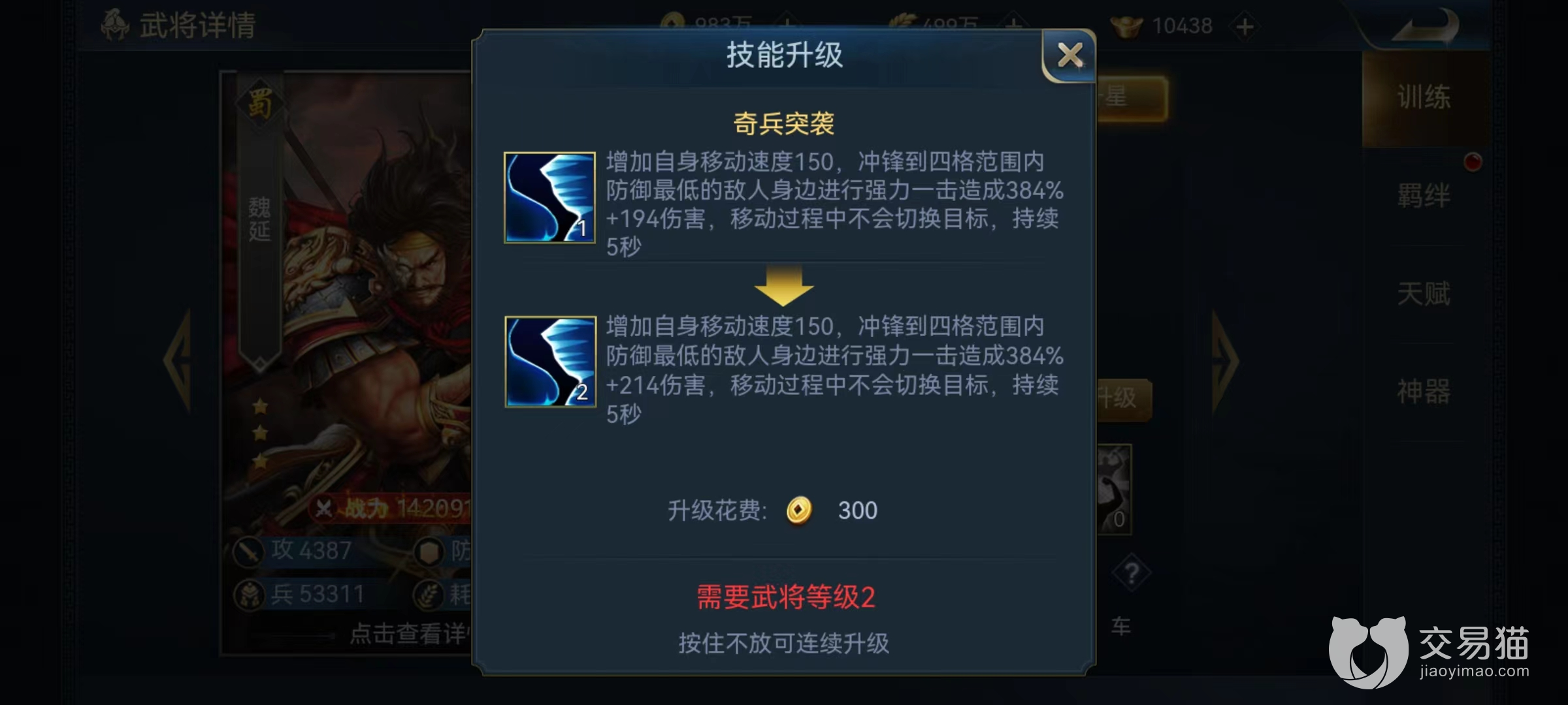 有了子女之后,就可以在府中开始培养,最重要的就是学习技能,并且形成最合理的技能搭配,根据远战和近战的不同特点,小编推荐的技能组成为骑兵突袭、威吓和反骨,还有一种搭配是妙手丹心,悍不畏死加勇冠三军。第1种组合的特点是可以在实战中压制对方战意,而战意是释放技能的能量来源,压制住战意就使对方很难在关键时候放出技能,极大削减了实力发挥。而第2种搭配是在攻击时可以附加眩晕效果,而且还有很强的兵力恢复属性非常抗揍回血快。