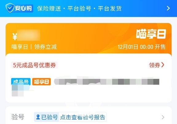 点击详情可以看得更加详细,包括具体能够享受多少优惠,是否支持平台验号、有没有赠送的保险、发货的形式等。比如说保险赠送,就是给账号商品本身带来了保障,如果我们在购买商品之后由于账号本身的原因造成没有办法正常游玩,那么在保险生效的期限内是可以获得一些赔偿的。平台发货就是卖家在上架的时候就将账号密码托管到平台中了,这样的话在我们买家下单付款之后就能够快速收到账号,不需要等待卖家或者是店铺的客服来处理发货。