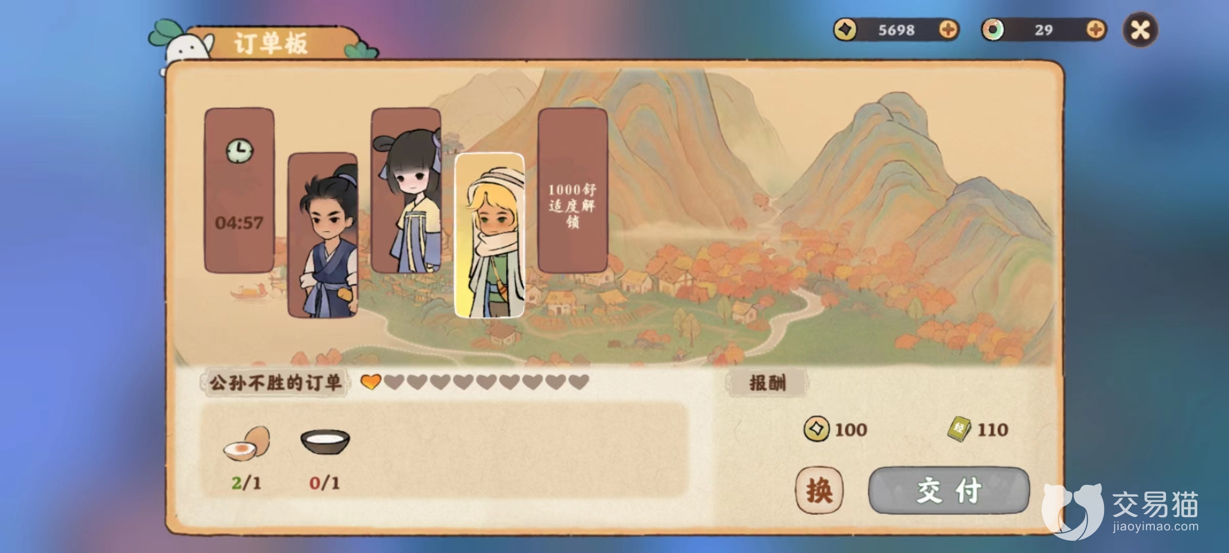 首先第一种是通过完成订单的方式来提升好感度的,玩家们可以在解锁订单玩法之后,通过不断地完成订单获取居民的好感度,同时还能获取一定的经验以及铜钱,是很划算的行为。
