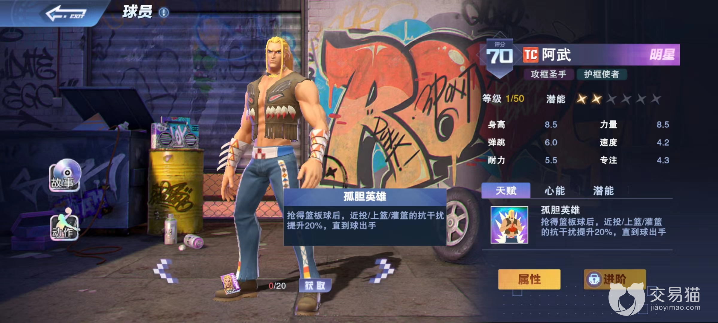 但是阿武动作和天赋都非常不错,招牌动作睿智投篮,在篮下近距离投篮的时候可以上身后仰进行抛射,很难被对方盖帽。现在篮下有很多擅长封盖的球员,使用阿武可以提高命中率。天赋孤胆英雄,当抢到篮板球后,接下来无论近距离投篮,上篮还是灌篮,都将获得抗干扰率提升。现在很多氪金球员都非常重视防守,要想在他们手中得分,在球员养成有所欠缺的情况下,阿武就成为了很好的选择。