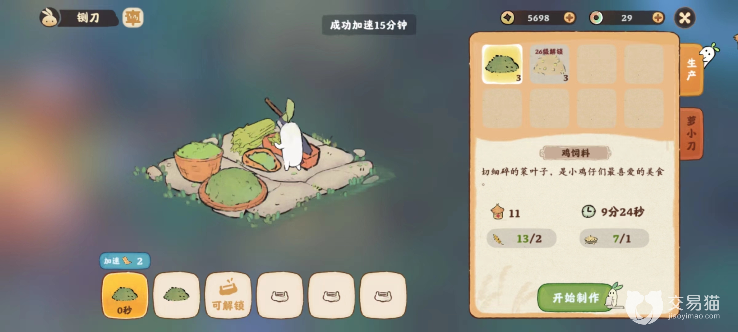 稍稍复杂一点的食材就需要玩家们二次加工了,像豆腐、酸菜之类的,豆腐需要我们在磨豆坊通过使用小豆子,不断地加工制作而成的,玩家们只需要准备一些原材料,然后放在工坊内,就会有专门的工作人员帮助我们生成,如果觉得时间太漫长的话,也可以使用加速符去加速完成,制作出来的食材可以用于制作各种美味的食物,还有酸菜和咸鸡蛋都是可以进行加工的,制作一些酸菜面之类的。