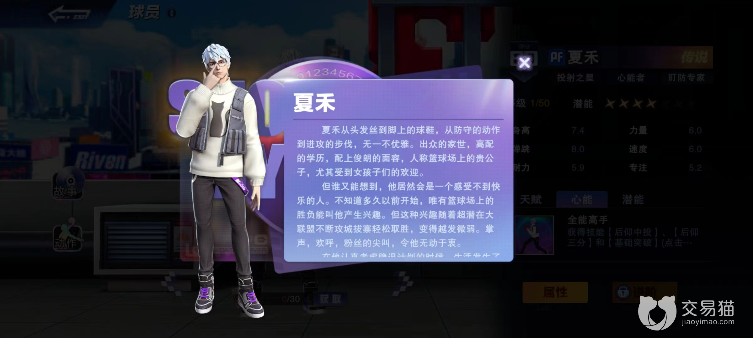 夏禾这名球员所属的位置是大前锋,在属性方面拥有很好的弹跳力和耐力,力量速度方面也极其优秀,而且作为一名传说级球员,属性成长完全不需要担心。自身天赋柔和手感,能够提高投篮命中率,心能技能全能高手,效果是可以获得后仰中投和后仰三分这两个超强的得分手段。同时能提高移动速度以及三分有效射程,这是一个可以持续到比赛时间结束的效果。