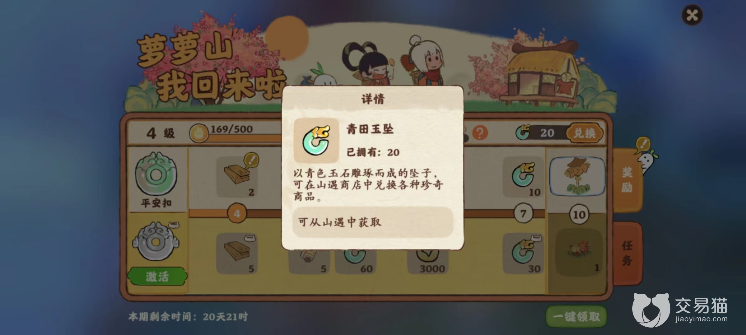 在获取到足够多的青田玉坠之后我们就可以前往山遇商店进行兑换了,会有很多常见的物资例如锤头、螺钉之类的,还有建筑卷轴,不过每一期可以兑换的数量都是有限的,玩家们要抓住机会。