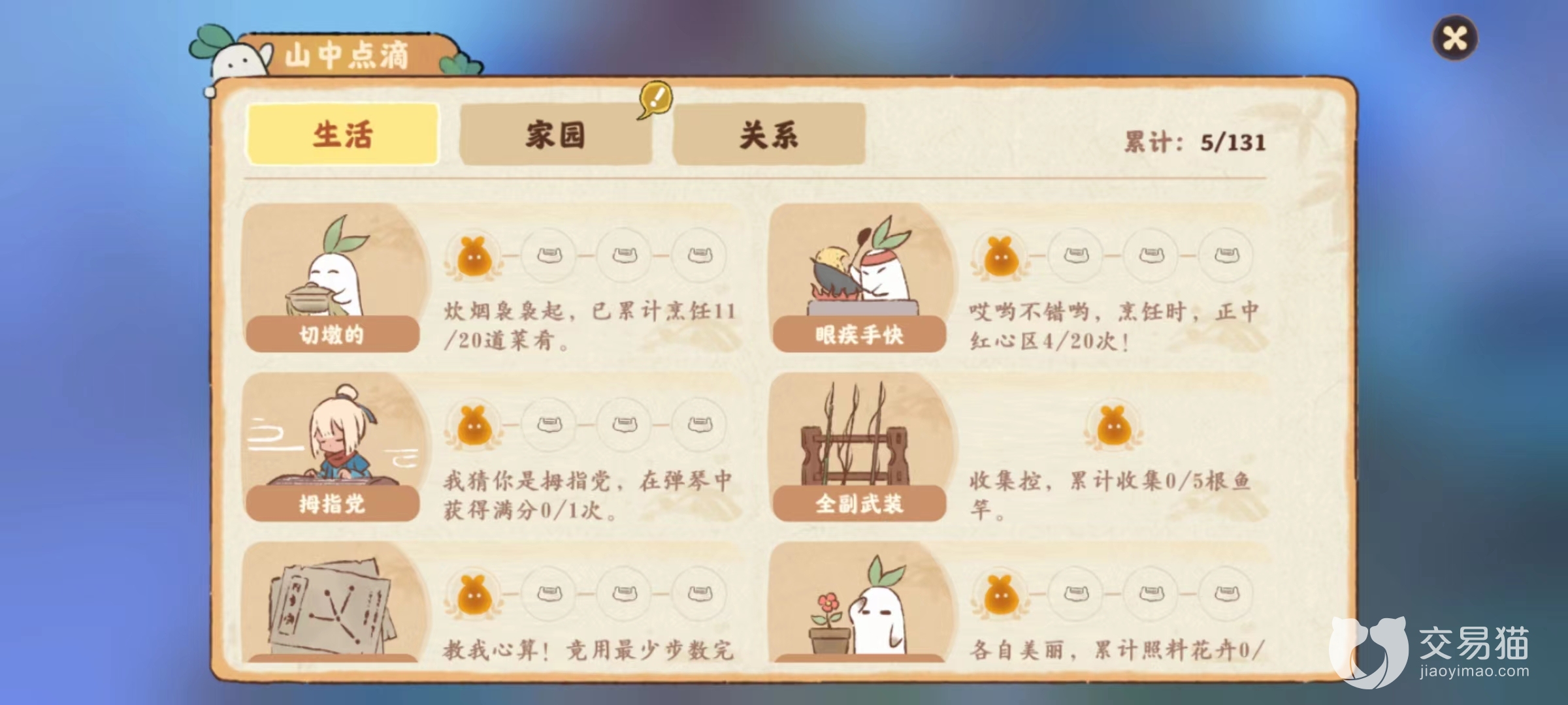 想要升级山志,其实方法非常简单,我们只需要完成游戏内的限定成就就可以,大家不要觉得成就都是很难完成的,像一些比较浅在的,我们基本上前期就能轻松搞定,山志分为多个板块,大致有点滴、田园等等,在不同的板块之中,我们可以慢慢的完成任务。