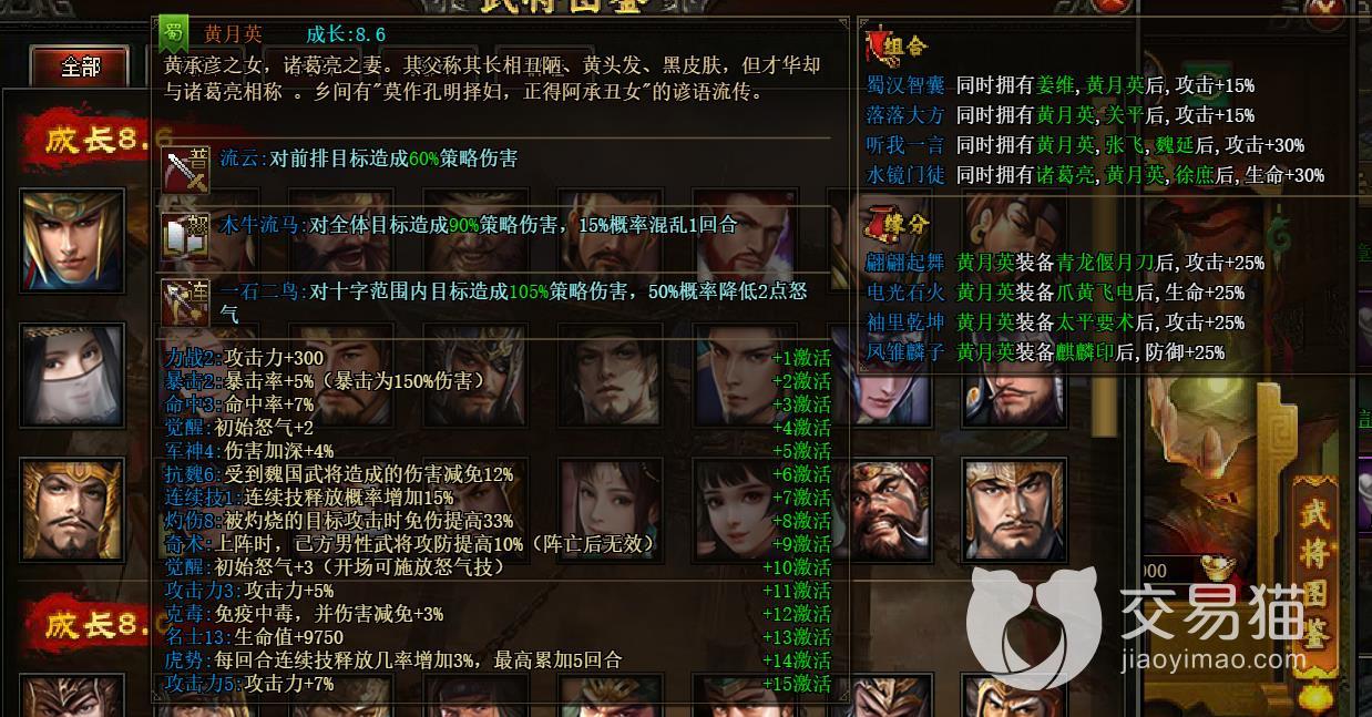 黄月英:作为诸葛亮之妻虽然长相比较丑,但是才能能够和诸葛亮相当。所以在策略伤害比较高,而且还能够对敌方阵容造成混乱效果,因此经常能能够造成出其不意的效果。连击技能能够造成范围效果,如果在地方阵容的中心释放就能造成大量的伤害。