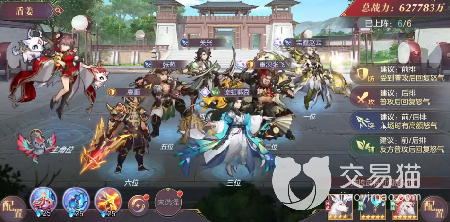 最后一个阵容前排可以放雷霆赵云、重溟张飞和流虹郭嘉,后排是关兴和张苞以及高顺,不过这里高顺跟郭嘉的位置也可以换一下,这个还是根据具体情况来放,在这个阵容里主要是靠张飞来抗主要伤害,关兴、张苞和赵云负责打输出,与前面一个阵容有点相似,也是靠怒气来打先手优势。