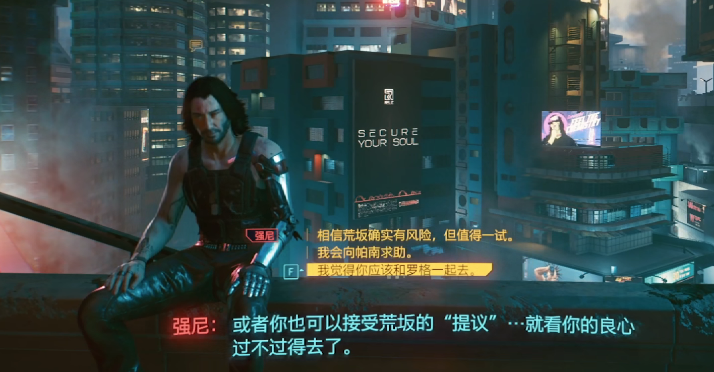 玩家们在天台上与强尼进行对话触发剧情,然后在进行选择的时候选择劝说强尼与罗格一起去,然后继续触发剧情对话之后选择注射药物,并且让强尼放手去做。这个时候强尼会接手v的身体,然后需要去酒馆里面找到罗格,然后需要选择坐下来与罗格进行对话表明自己的身份。