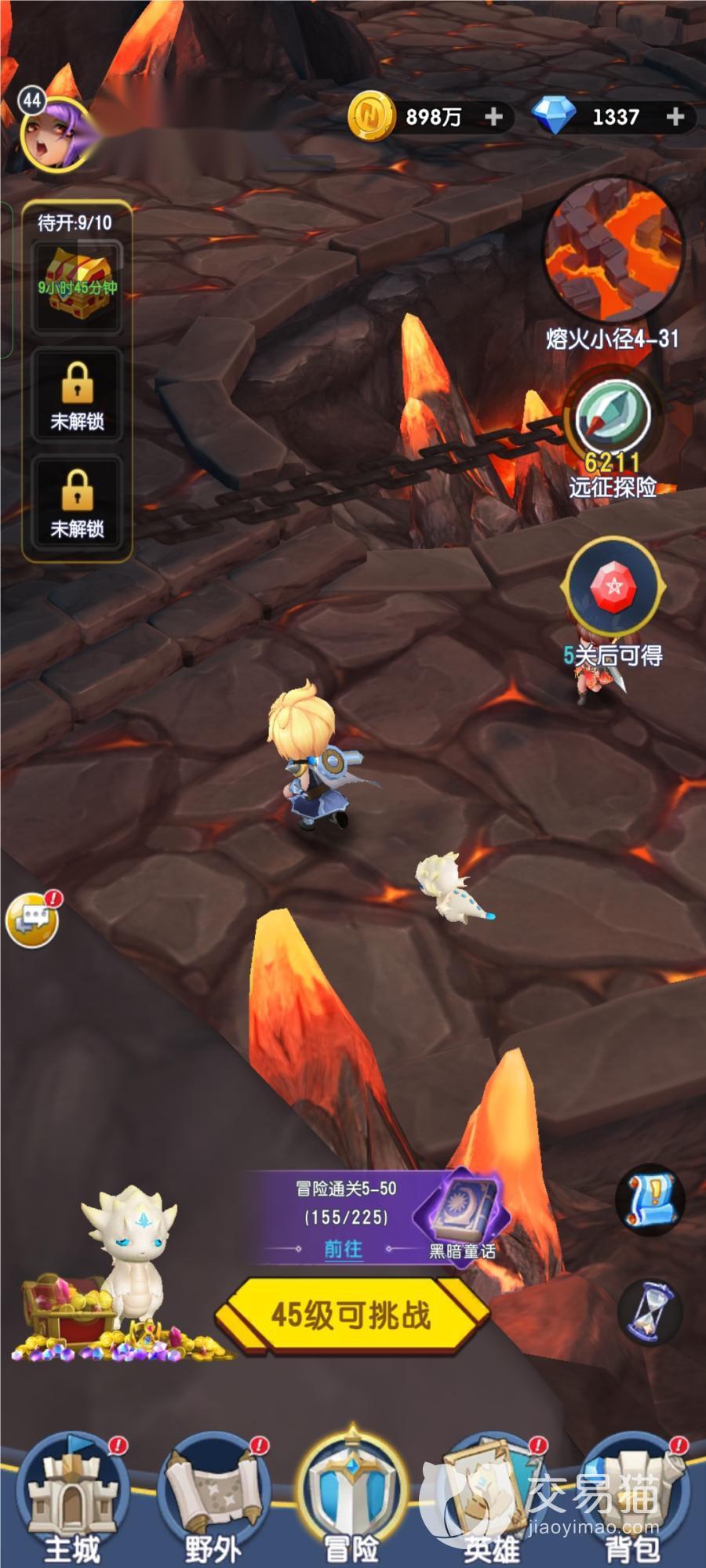 首先就是战斗了,特色是挂机和战斗推出,也就是玩家可以不用一直盯着屏幕看枯燥的战斗,主线就是战力和玩家等级的比拼,这个时候打几张就会解锁野外和主城这两个重要的功能,战斗可以让它自己慢慢的打。