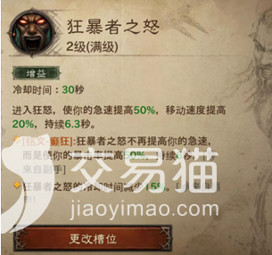 我们来说下这个职业必带的一些技能,首先是旋风斩,这个技能是个群攻,可以对周围所有敌人造成高额伤害,非常适合群怪,然后是狂暴者之怒,这个技能可以提高我们的急速与移速,如果打上了铭文的话还可以让我们的暴击率提高50%,且持续6秒。