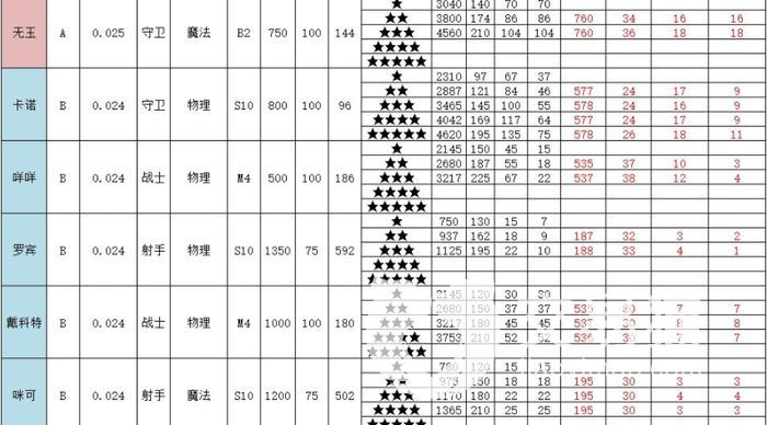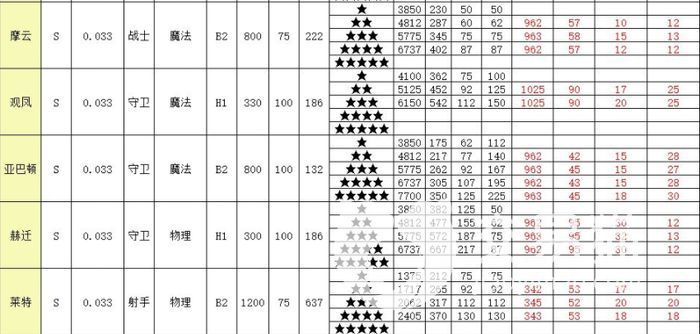 攻击最高的是s级别的赫迁攻击到667,并且还是守卫角色血量也来到四星最高六千点的水平,可惜攻速只有三百算的上最低档了,所以攻击频率不是很高只是适合防御,打伤害还是太慢了。