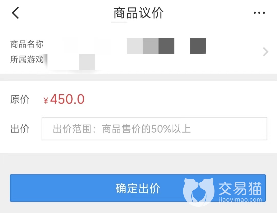账号交易的本质还是交易活动,既然是交易就讲究你来我往、有商有量。交易猫平台考虑到这类细节,特意在商品上架时增添了是否同意议价的选项。当商家选择同意议价后,有购买意向的用户就可以适当低于订单价格进行出价。但需要注意的是,砍价金额不得低于订单金额的50%。