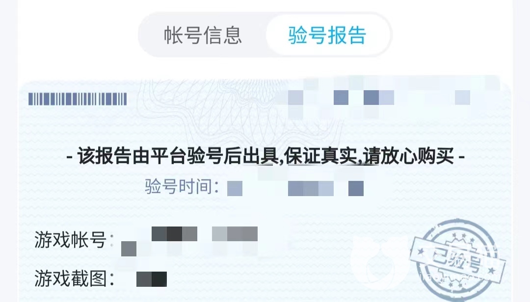 交易猫的商家在上架账号等商品时可以选择让平台验号并出具报告,这样就可以在商品详情页中附上官方出具的验号报告。报告中除了验号时间和验号批号之外,还注明了审验的游戏账号以及游戏截图数量,这些信息对于增加订单信誉度有着极大的帮助。