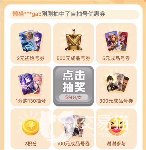积分在购买账号时也能起到很大的作用,毕竟平台既然推出了签到的功能,也是有它的用意,累积的积分用于参加抽奖活动,就有机会获得各种类型的账号优惠券,很多小伙伴都有抽取到并买到了心仪的游戏号,如果你的手中已经有了一定量的积分,那么就一定要进入活动界面看看能不能抽到大奖。