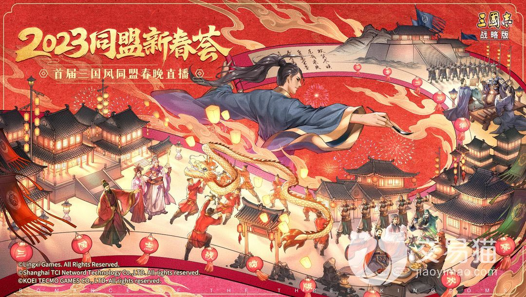 然后这次活动的惊喜,还有首届三国风同盟春晚直播,社群内的云春晚,还有盟友共创的官方直播新春荟,所有玩家都可以踊跃参与。然后最后的就是正月里的游戏内福利活动,玩家在除夕之夜就可以参加了,到时候尽量不要错过哦。