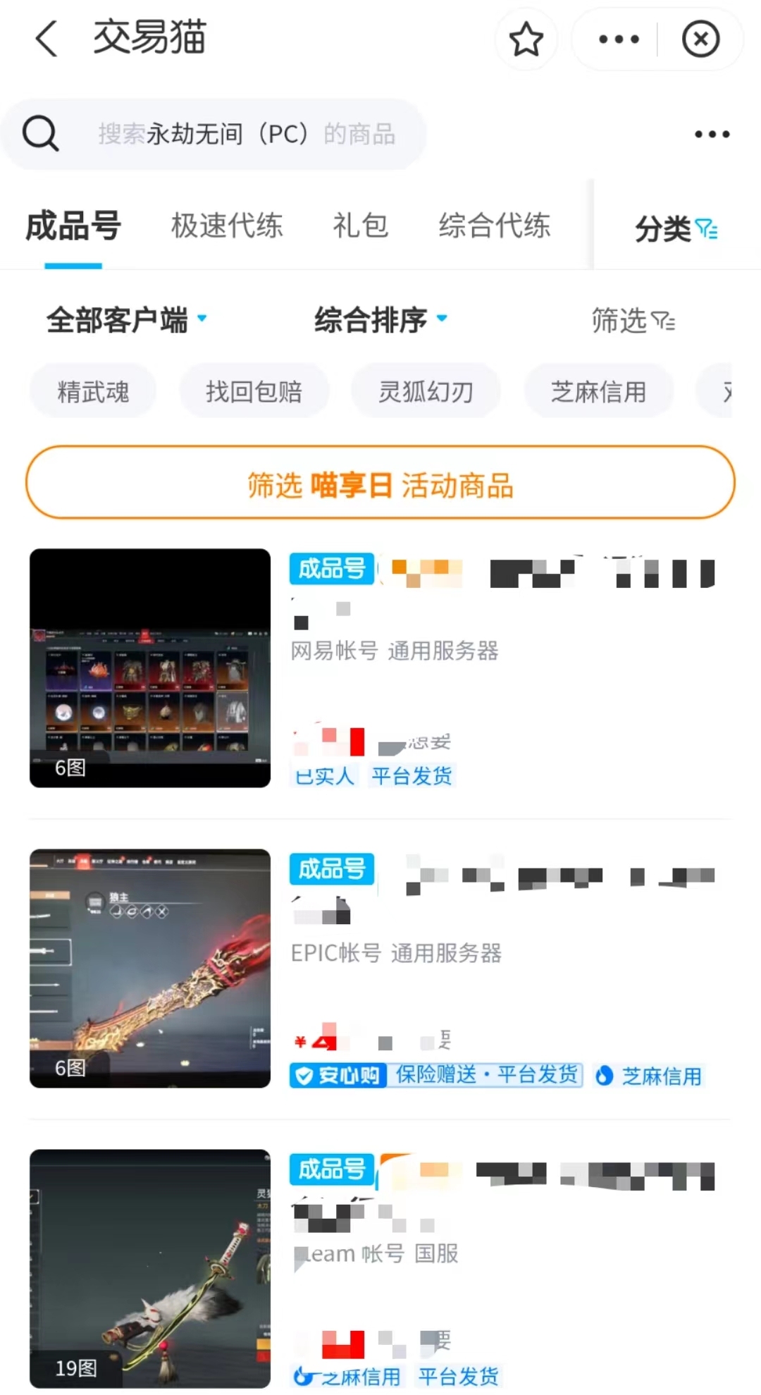 以上就是小编收集到永劫无间购买账号去哪里的全部信息,如果你想要一个优质的永劫无间账号,交易猫就是你最好的选择,在这里不仅可以买到物美价廉的账号,交易安全也有所保障。