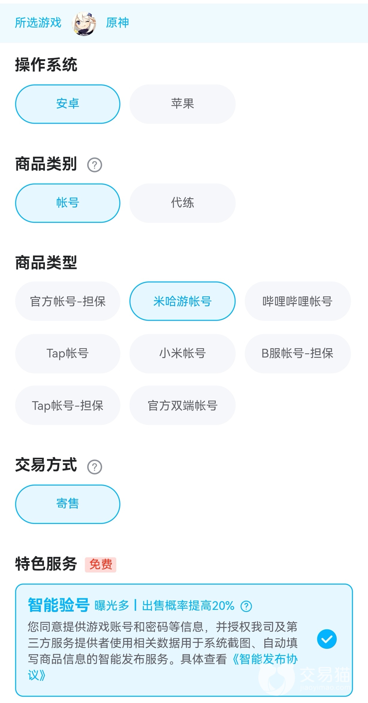 原神作为国内开放世界手游的首例,在这一块领域已经展露锋芒,也成功走到了海外市场,在全球都是比较火爆的,说它是流量密码也不为过,就连二次元盛行的秋叶原也能到处看到原神角色的海报,足以见得原神的实力了吧。玩过游戏的玩家都知道这款游戏要靠氪金充值的性价比不高(欧皇除外),经常吃到大保底,而买号成本就低很多了,一个648能买到的号价值可不是一星半点儿。想要买号自然也得有人卖号,通常一个交易平台都兼顾两样,交易猫就是一款安全可靠的交易APP。