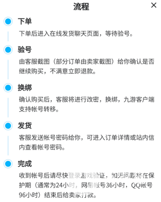 在交易猫内的购买流程都是由平台介入的,先由客服和买家确认是否购买,确认购买后客服进行换绑改密,后续也是由客服发送新的账号密码给买家,避免了卖家在交易过程中做手脚,让买家可以安心的买号。