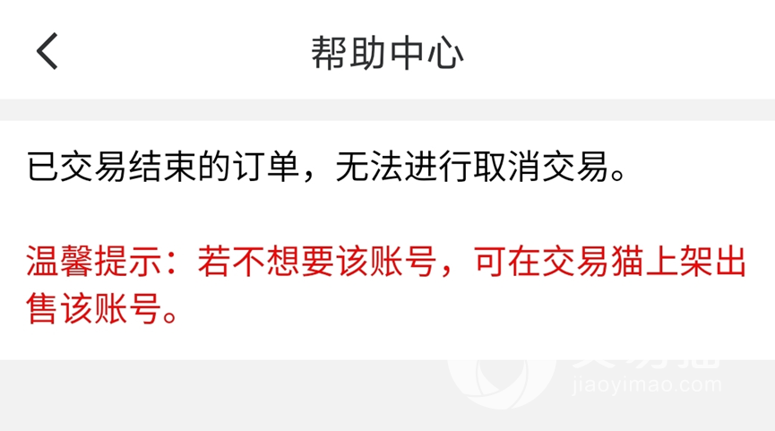 不仅为买家提供优质的买号服务,也为卖家提供了交易的安全保障,为了防止买家在交易后无故进行退号,影响卖家的交易体验,对于已经结束的订单,买家方面无法进行取消交易。