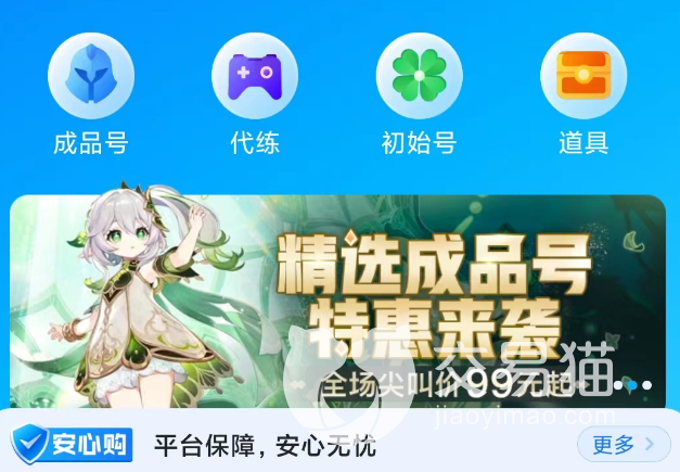 在交易猫里比较热门的游戏都是有自己特惠活动专区的,原神就不例外,目前活动中提供多个价位折扣的成品账号,参与活动的账号价值都要比直接购买便宜许多,且账号更新速度快,大家完全可以每天都去专区内转一转,要是遇见高性价比的账号直接出手即可。