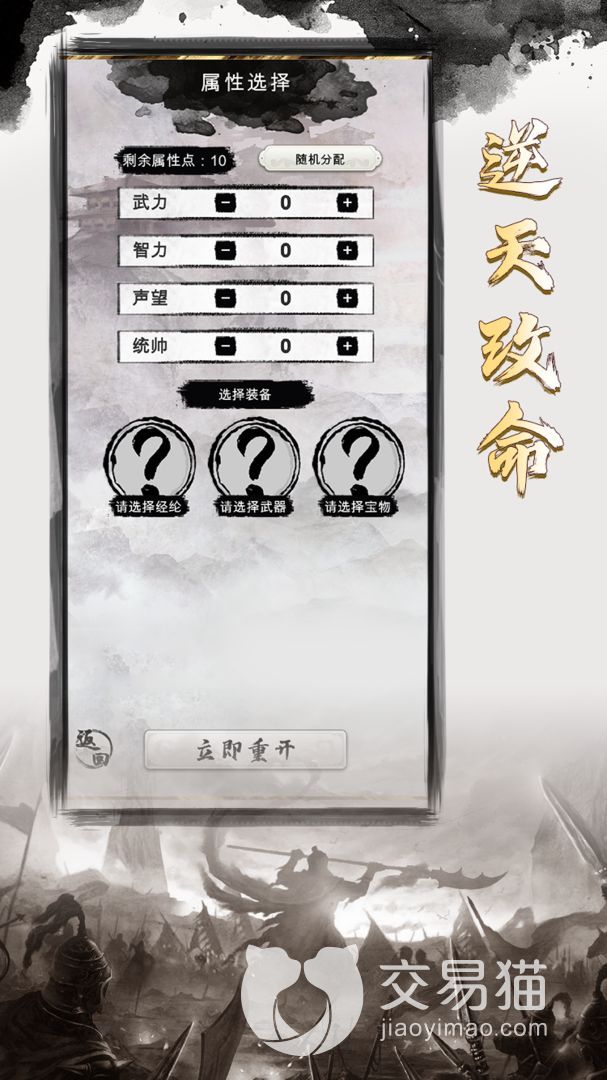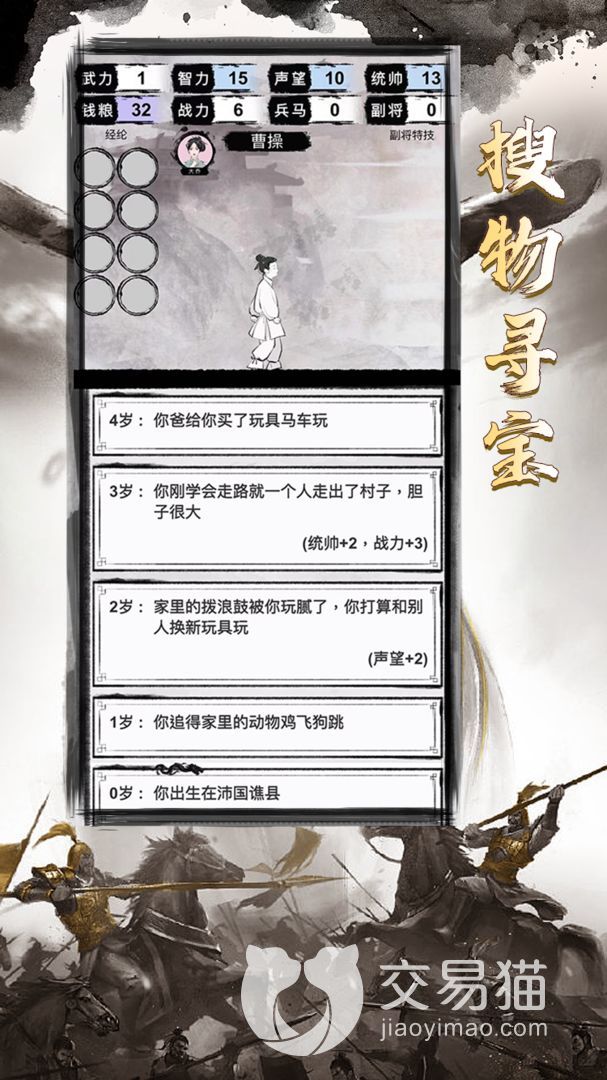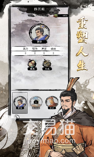 游戏的总体玩法是偏向剧情养成的,可以自由地选择某个三国人物开始养成,在养成过程中会遇到很多的突发事件,这些事件完成后可以获得属性点,玩家能自由分配地属性点,让人物变得更加强悍,从而获得更好的结局走向。