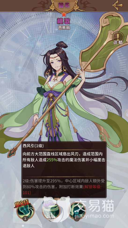 副C:桃歌。她的输出其实也是不错的,技能描述中所写的是大范围,其实在前期敌人比较聚集的环境中,这个范围差不多就等于全体,而且255%的攻击加成也算及格,最关键的是她还能小幅击退敌人,算是补足了队伍中的控制。
