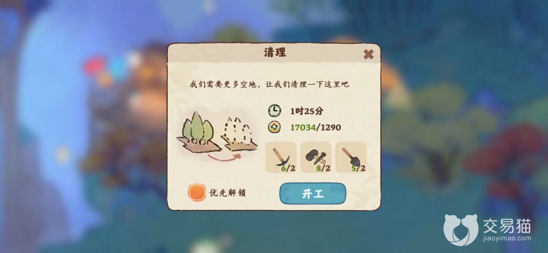 在我们刚进入这款游戏的时候,会发现周围除了我们所在的房子以外,其他地方都是被各种树木或者石头遮住的,如果想要在这些地方放上我们的建筑物,那么肯定就需要先将这些地方清理出来的,将其先变成一片空地的。