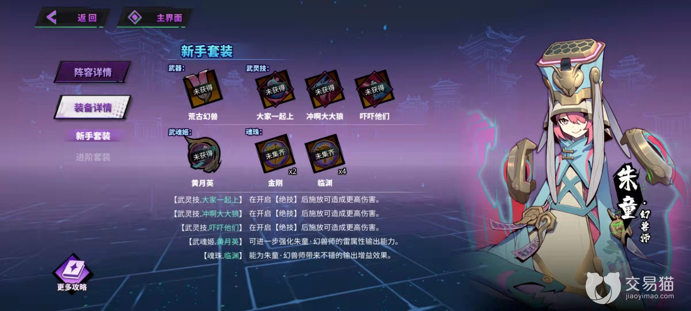 所以在装备选择上,建议大家选择“荒古幻兽”,因为它的三个魂技都能让角色在施放绝技之后增加伤害,而恰好朱童的发力期就是在绝技之后,因为在那之后它的守护灵会得到进化,可以说后续的很多输出都源自守护灵,而非本体。