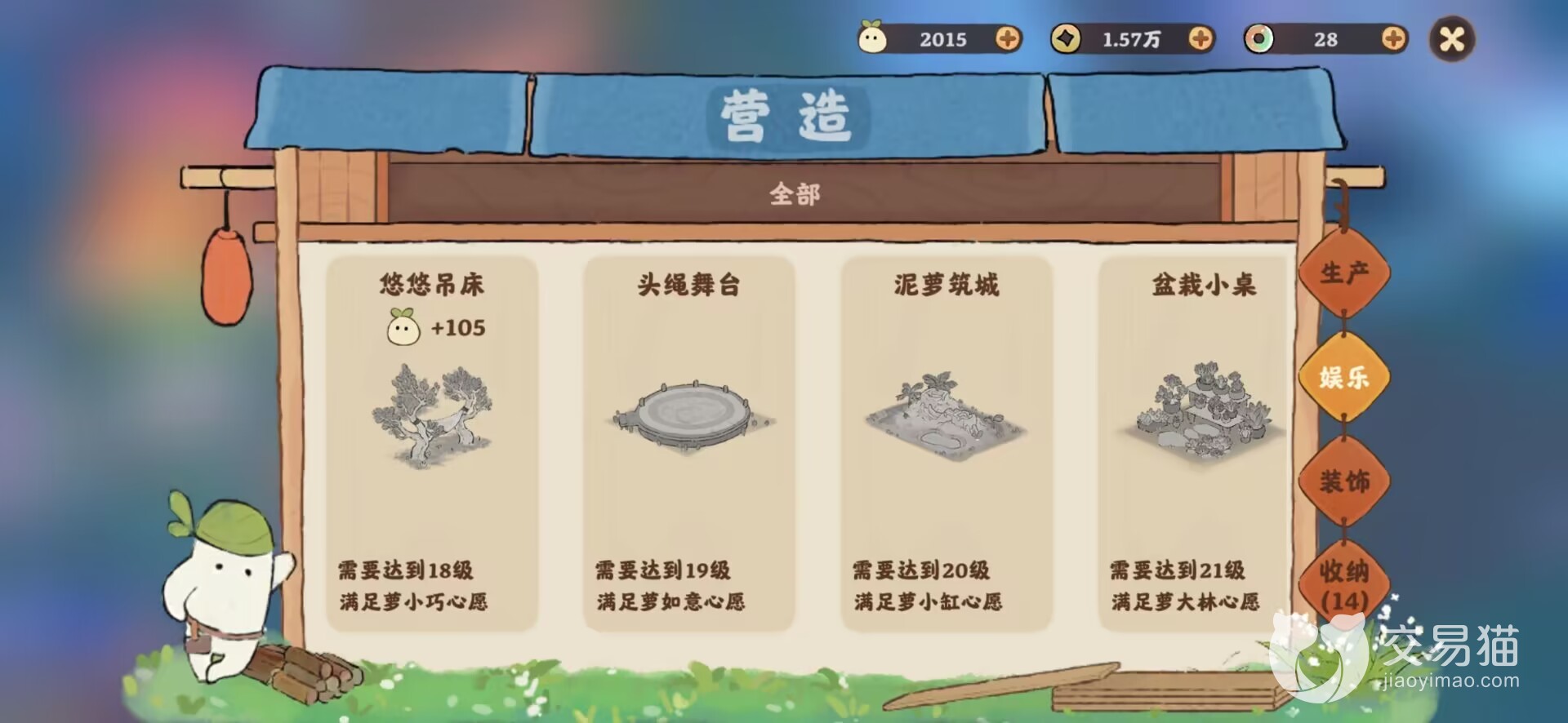 想要获取这些高品质的装饰物,首先就是去做任务进行解锁,因为游戏内有很多地方是未开发的,我们在达到了一定等级以后,就可以让小萝卜们去修复哪些地图上存留的装饰物,虽然所提供的不是很多,但也还是可以提升一些的。