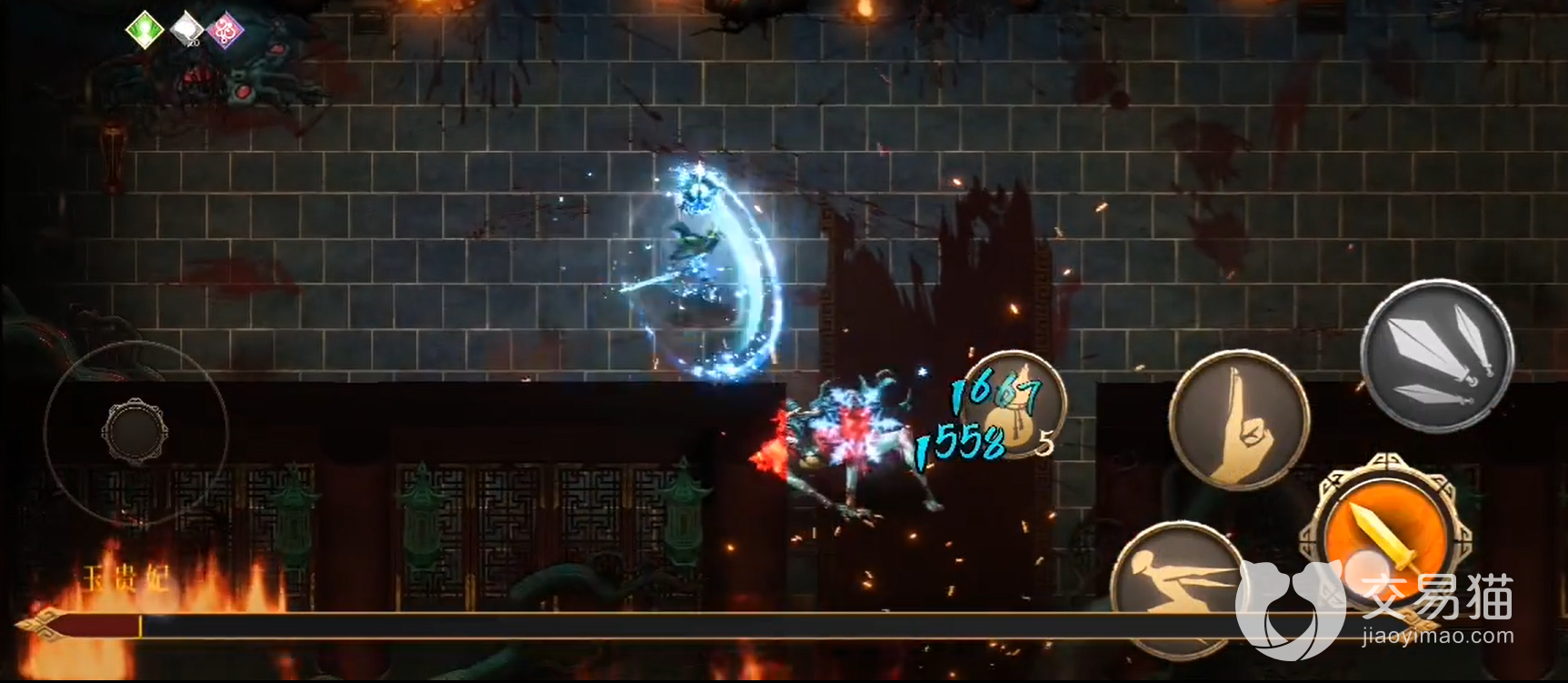招式三:吐蛛丝,在释放这个技能的时候,玉贵妃会有一个前摇,就是到房顶上,然后朝着我们吐出可以限制行动的蜘蛛丝,并且还会对我们造成伤害。