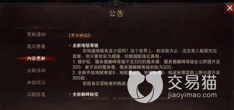 同时,这个新的版本还让地域等级有了新的优化。大家在更新之前都知道,地狱难度的最高系数是5。在这次更新之后,玩家们将迎来新的6-8的难度系数,还可以挑战更高的秘境层数,现在已经更新到了300层。之后,服务器的初始巅峰等级也会变成320级。