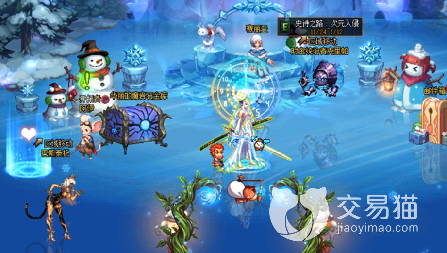 在冬季主题期间,大家还会看到鼠标指针会变成一个雪人的样子,非常可爱。而且官方还为我们准备了一些彩蛋,在活动期间,玩家们都是有概率能够看到的,从指针中发现有魔界人。城镇里面的NPC也会穿上相应的冬季服饰,也能够让玩家们眼前一亮。