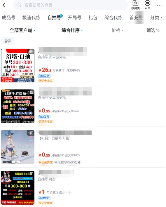 幻塔里面的角色非常多,很多玩家在玩游戏之前都会买一个自抽号,那么幻塔初始号怎么买?接下来小编给为各位玩家带来安全购买幻塔初始号的平台推荐,很多号都有上万墨晶和十几单抽券,想在幻塔游戏里面抽卡过瘾、想安全买到初始号的玩家,跟着小编一起来看看吧!