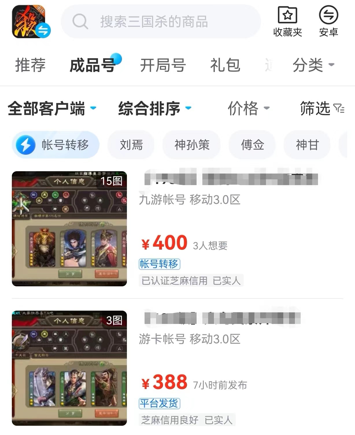 以上就是本次三国杀十周年账号交易去什么平台,三国杀账号交易平台介绍的全部内容了,三国杀是一款老牌游戏了,大家购买前也要想清楚了,因为游戏内的金额上下浮动比较大,选择自己需要的资源就行了。
