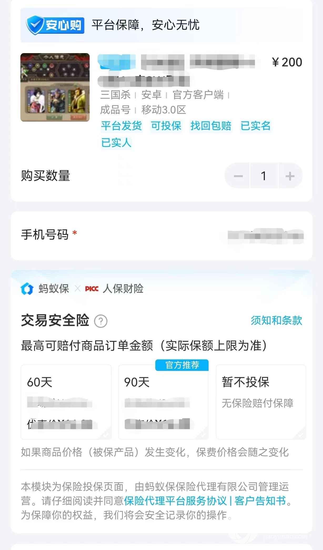 交易猫在交易平台中属于知名度较高的,平台有大量的用户活跃,交易前都需要先实名认证,买卖双方都需要,卖家账号上架需要根据售价提交一部分保证金压在平台那,算是给买家的一个定心丸。买家下单账号可以选择投保,有60天90天的选项,如果在投保日期内账号出问题平台会提供理赔并解决账号问题。建议过程中支持验号换绑,会由平台客服一起帮衬完成。