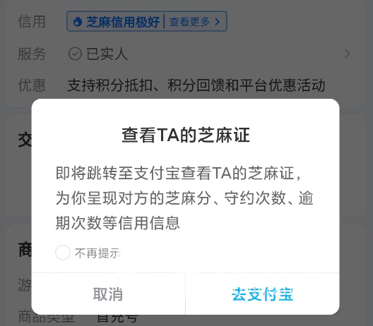 买家在购号之前肯定要对商家有一个基本了解,在平台内注册商家时需要完成活体人脸识别,其次还能将个人芝麻信用分数同步到平台,买家在平台中点击即可跳转到支付宝内查看具体情况,芝麻信用越好的商家交易安全性也会越高。