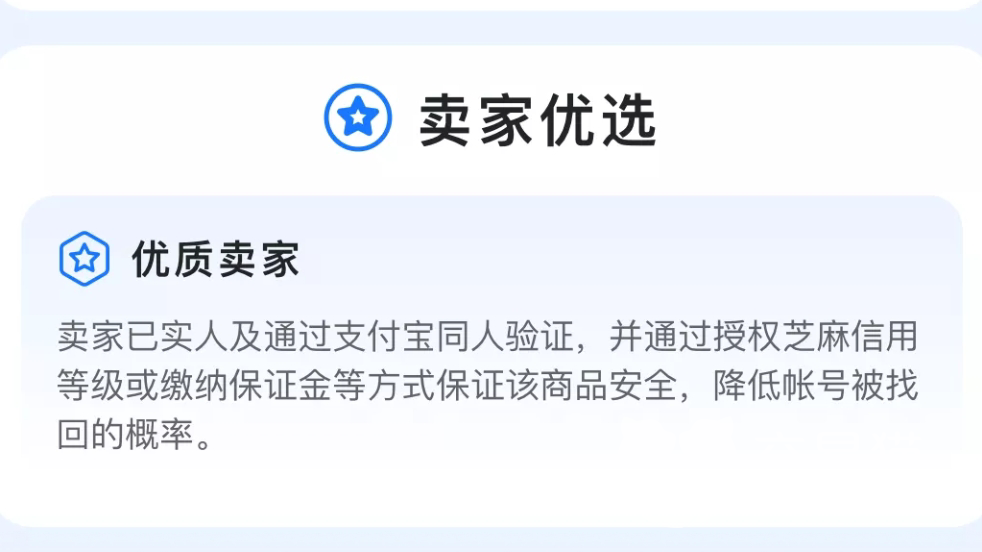 和优质的卖家进行交易,一定会是一种十分愉悦的交易体验,因为优质的卖家会对自己的账号保养的很好,并且基本不会出现恶意的行为,会为买家带来更良好的体验,而这些优质的卖家会被平台优先的推送到交易首页上,更加保证用户的交易体验。