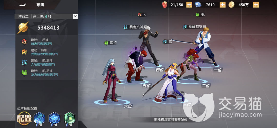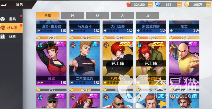 另外两个火焰操控者,草薙京和K在全明星激斗里也有出现,都是不错的战斗角色,游戏里将角色分为了风林火山四种定位,基本上snk旗下的大多数格斗游戏ip的知名角色都会出现。k的cp角色冰女库拉同样出现在了全明星激斗。