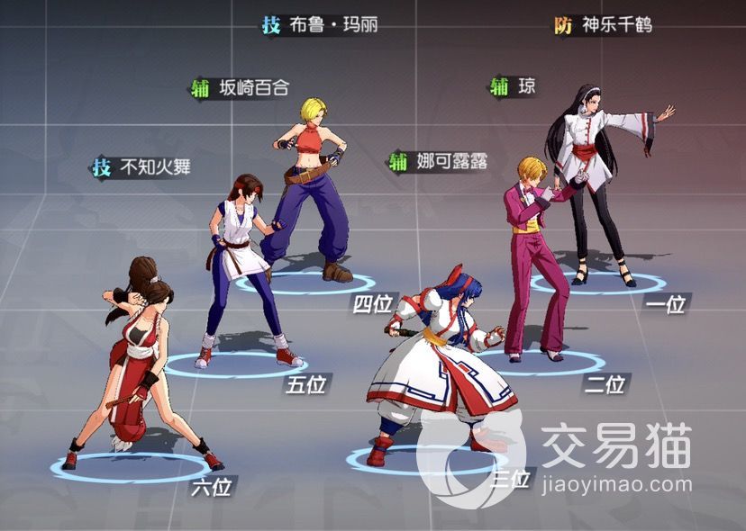 饿狼传说系列,作为SNK的镇社之宝系列,男主帽子男特瑞也在全明星激斗中登场。而带头大姐不知火舞自然不能缺席,当年不知多少人的性感女神,拥有闻名游戏圈的好身材以及操控火焰的扇子格斗术。在全明星激斗里因为强度不错,而且是女队的核心之一,所以全服都有很多玩家练,你可以在排行榜中看到很多玩家都带着不知火舞。