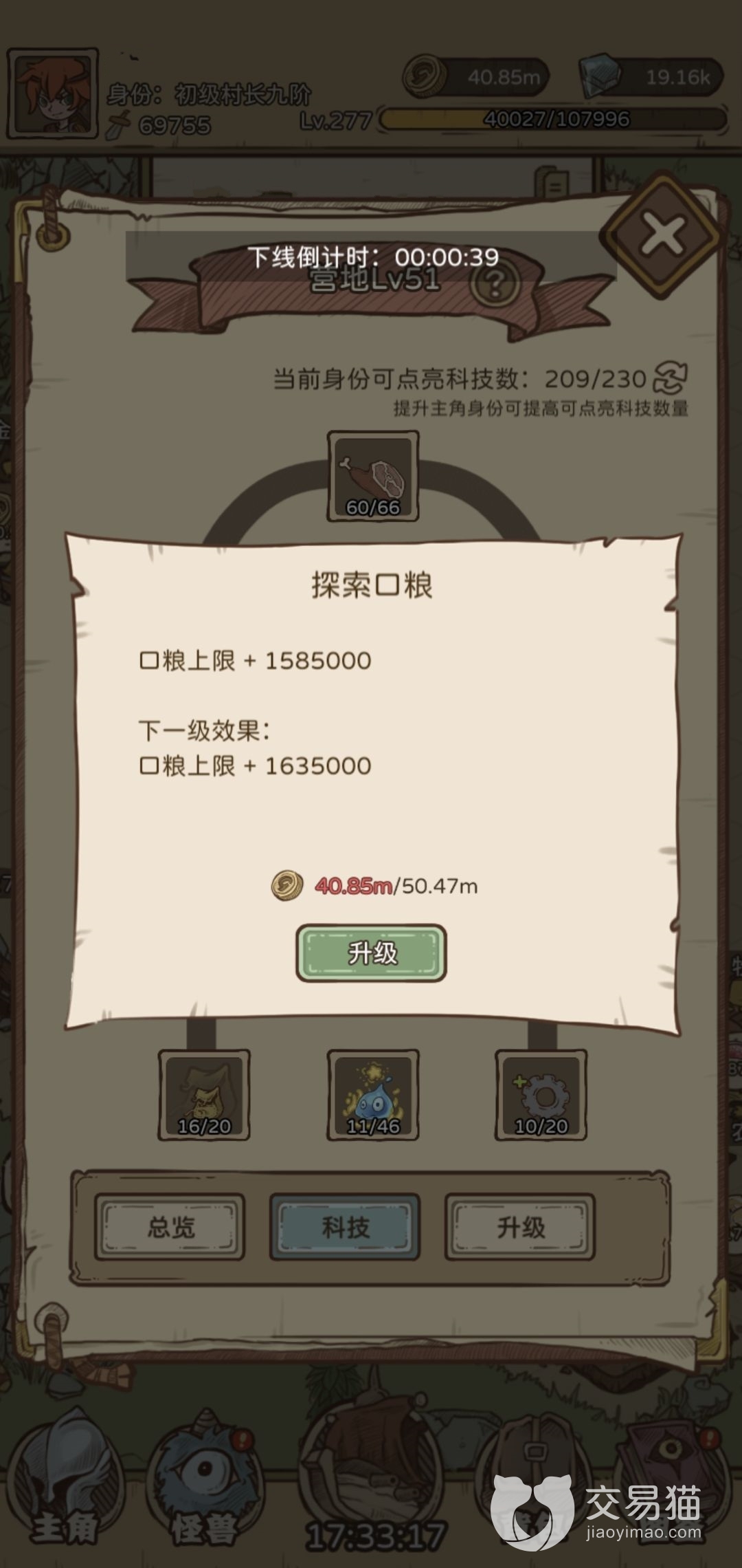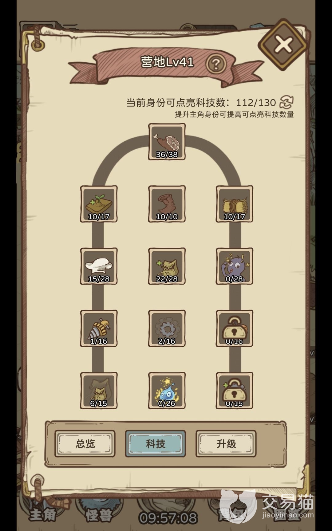 开荒怪兽岛这个游戏主要靠口粮来提供探索进度,而要想提升口粮上限则需要在“营地”中升级对应的“科技”以及完成“菜谱”成就来提高其上限。