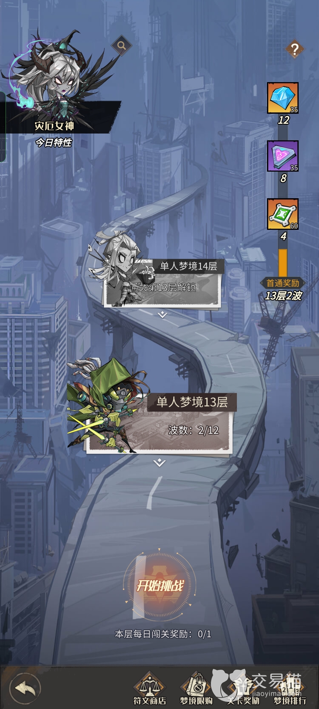 然后梦境挑战也是玩家一定要去完成的模式,模式分为单人以及多人根据时间不同开放不同的模式,通关奖励不多,但是有专门的商店,玩家在通过足够的关卡以后可以买到很多有用的道具,通过的越多奖励也越丰厚。