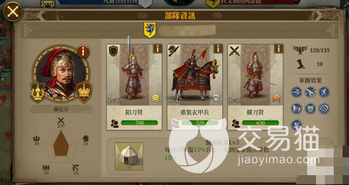 大家在游戏中的战力需要利用兵种组成军队来升级,其中的部队就是大家可以派遣的军队,这个部队的组成需要大家根据兵种的特性来搭配,游戏中一共有六大兵种,大家想要进行搭配有各种搭配,比如两种近程步兵搭配一种骑兵就是最经典的部队阵容。