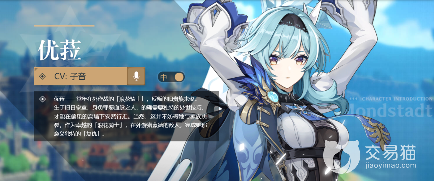尤拉是原神手游中的一位5星冰系角色,本身获取这一角色就要靠运气,会耗费不少资源,加上后期的投入,其实不如买个账号,如果你觉得成品号太贵,可以买个自抽号,后期再慢慢培养角色,那么原神尤拉账号在哪里购买呢?小编建议大家到交易猫app上看看,说不定能有你中意的账号哦!