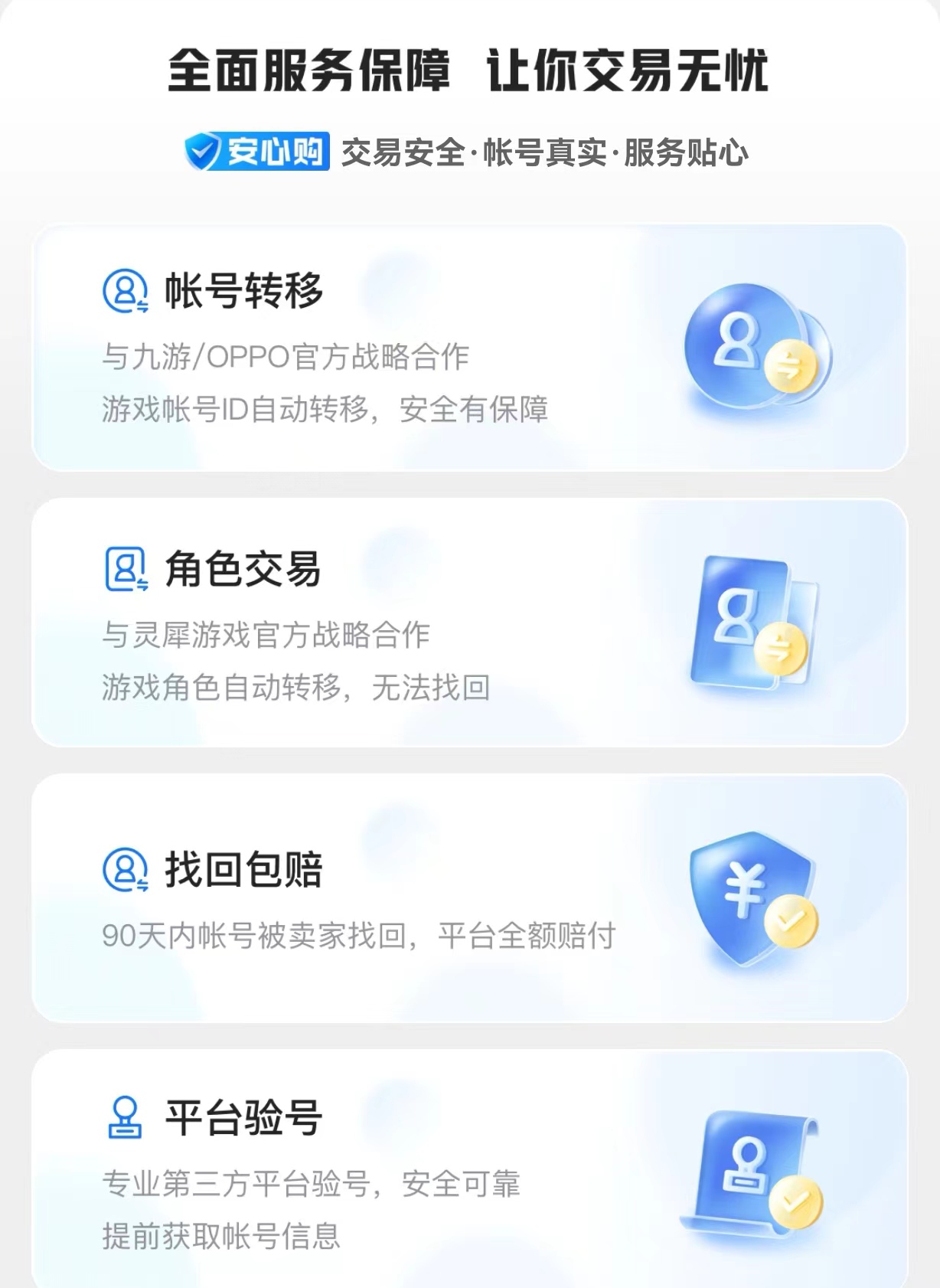 交易过程安全,交易猫所有用户都是需要完成实名认证才能进行交易,双方做出严重违规的事可是会影响名誉的。部分出售账号有安心购的保险,在保险期内如果账号被找回、封号等情况,买家可以提交证明进行申诉,平台会进行理赔并处理问题。